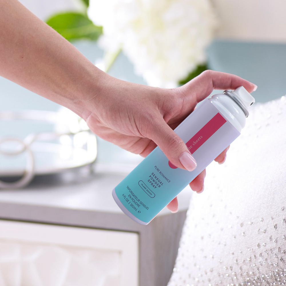There's no denying that fresh is sexy. Between the Sheets is a powder-based linen spray that adds an alluring fragrance anywhere you spray it! After little fun in the bedroom, use a spritz or two to absorb moisture and make your sheets feel just like satin and put an end to the dreaded wet spot!