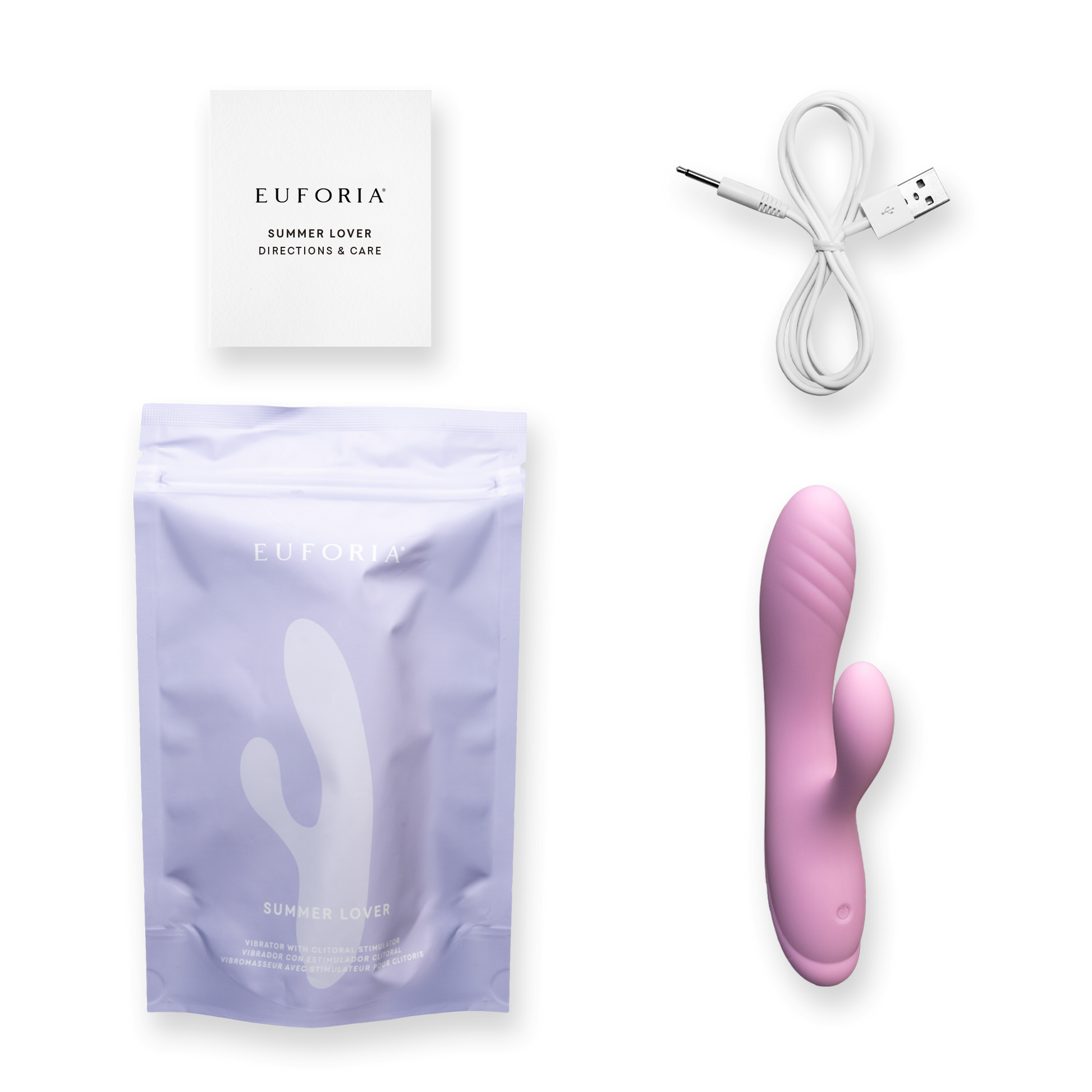 This dual-action vibrator offers up a silky-smooth feel that is endlessly inviting to the touch with a curved, ergonomic handle and a subtly rippled shaft. Summer Lover features three speeds and five rhythmic patterns of powerful vibration that simultaneously stimulate the clitoris and G-spot for blended orgasmic bliss that will make this an affair to remember.