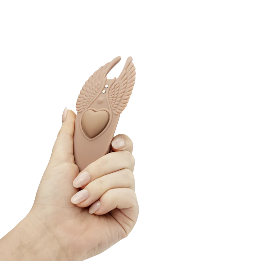 This wearable massager features a detachable heart-shaped magnet that can be used to attach to any undergarment for discreet pleasure on the go. When in use, the soft silicone curves press up against your body, stimulating all your favorite spots.